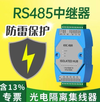 1路RS485转8路RS485,每路之间相互隔离,且具有增加传输距离功能。